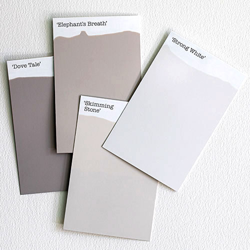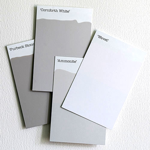 例えば、Farrow&Ballには、白の塗料が6つのグループに分けられて多数存在します。白を「ニュートラルカラー」と呼び、そのベースとなる色味(グレーやグリーン、紫系などのアンダートーン)の違いによってカテゴリー分けされ、それぞれが、「温かみ」や「クールなメリハリ」、「繊細さ」など、異なる特徴をもっています。
