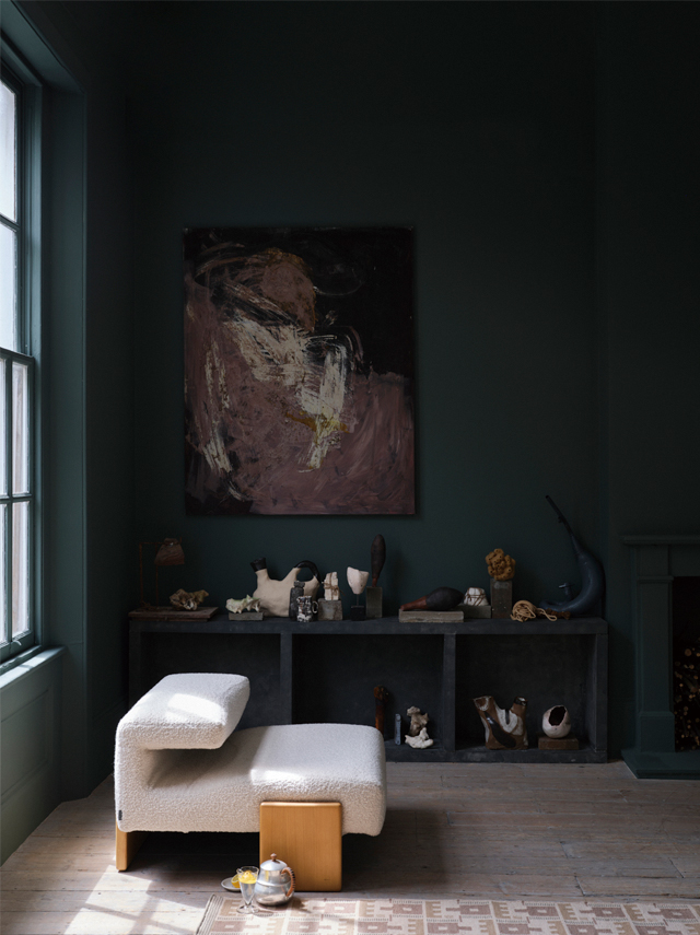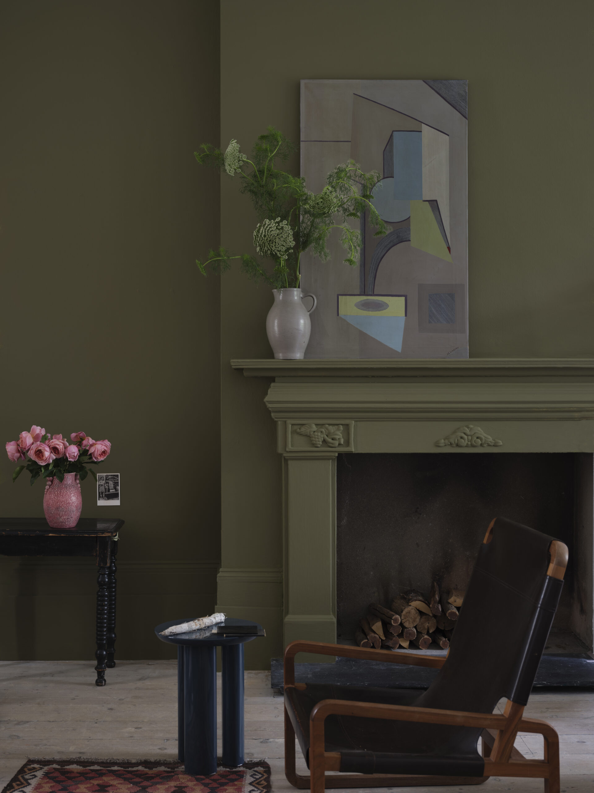 Farrow & Ballで最も愛されている2色、Inchyra BlueとGreen Smokeの中間に位置する色合いです。 伝統的なキャンドルスナッファー(ろうそく消し)の煤(すす)で変色した真鍮を思わせる、趣のある色です。
